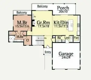 The Archer interior features a main level with spacious open living, master suite, and laundry/mud room areas. A gracious screened porch creates outdoor opportunities free from insects.
