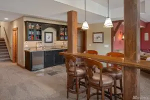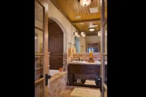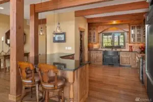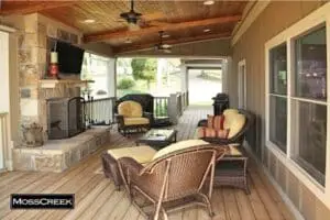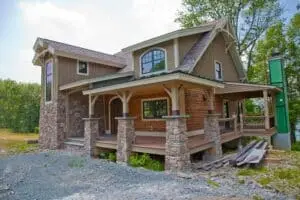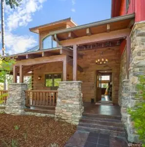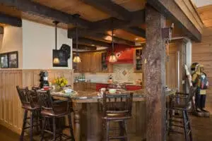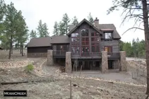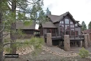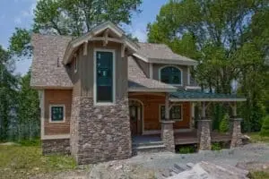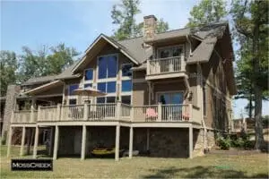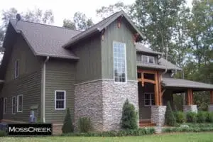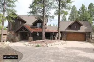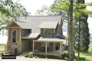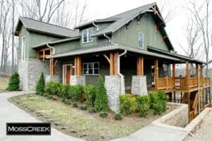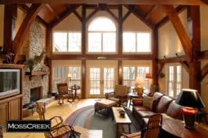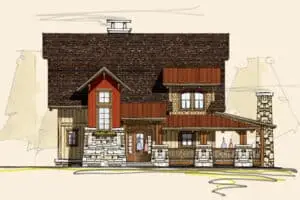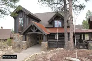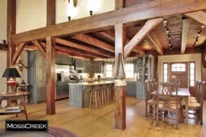 The Barn Owl by MossCreek captures the same spirit of unique shape and color with 3 bedrooms, 2-1/2 baths, including a master on the main level. A large story and a half vaulted Great Room with exposed timber trusses and an open Kitchen/Dining Room complete a dramatic interior. Exterior timber, log, and shingle detailing complete the feel of a modern mountain camp that sit lightly in the natural environment.
