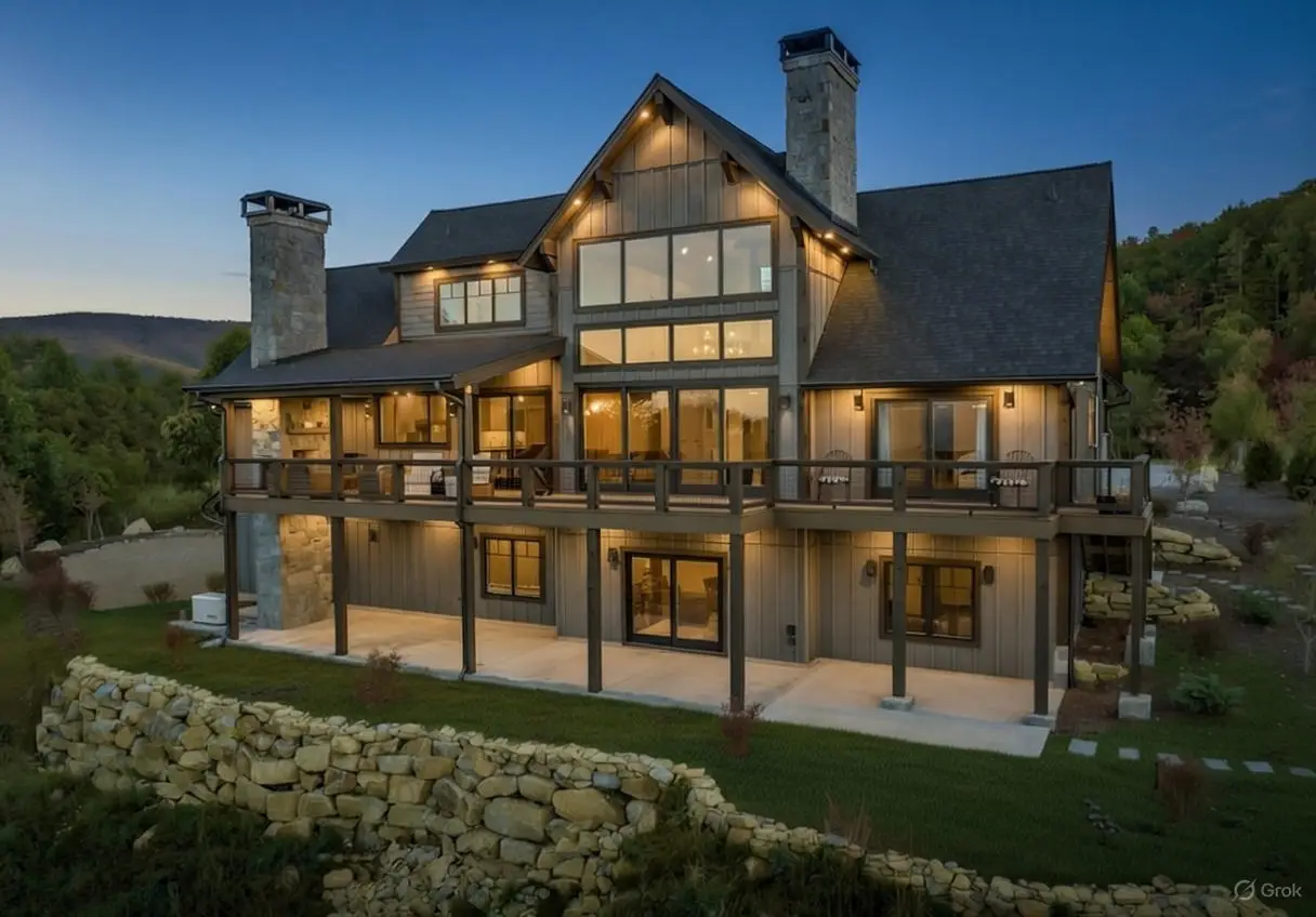 The Bitterroot’s earthy exterior is defined by wood siding, timbers, glass, and stone.