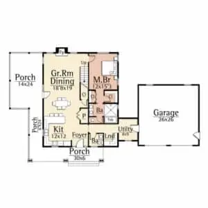 The design features open living areas and master suite with beamed ceilings on the main level. The large windows of the great room let dramatic light fill the home. On the upper level the home features two pleasant guest rooms, shared bath, and a den.