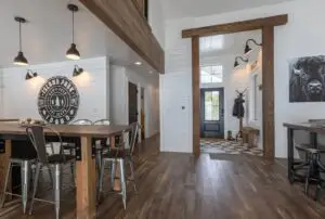 The Daybreak features 3 bedrooms, 2 baths, with a generous Master Bedroom on the upper level. A story and a half Great Room with exposed timbers and an open Kitchen / Dining Room create a dramatic interior.