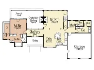 On the exterior, the Dulcimer features generous outdoor living with a fireplace.
