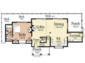 The Elkmont by MossCreek captures this same spirit of rustic luxury with 3 bedrooms, 2 1/2 baths, with a master on the main level. A large story and a half vaulted Great Room with exposed log trusses and an open Kitchen / Dining Room complete a dramatic interior. Exterior log detailing completes the feel of this modern mountain camp.