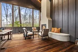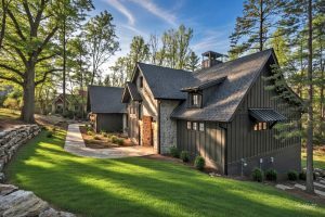 Outside, the Hampton showcases a luxurious exterior composed of natural materials—stone, wood, and glass—that harmonize with the surrounding landscape while exuding timeless appeal. The façade balances clean lines with textured finishes, creating visual interest and curbside elegance. Inside, the design emphasizes quality craftsmanship and upscale finishes, from custom cabinetry to sleek countertops and ambient lighting.
