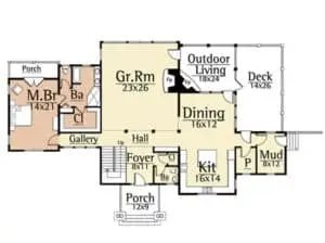 The Larch by MossCreek symbolizes that same durability to outdoor elements with an exterior of stone, timbers, wood, and glass. The interior of the Larch is rich with timbers and vaulted ceilings. An open living plan ensures that everyone is a part of the fun. A grand master suite on the main level, combines with two full bedroom suites on the upper level, to create the perfect home to relax in the rustic regions of the American countryside.