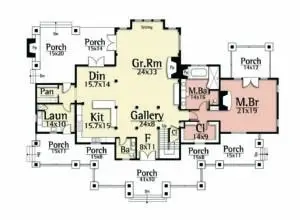 The views from a mountaintop convey a sense of accomplishment to each climber who reaches the summit. The grandeur of the Mountaintop by MossCreek epitomizes this same spirit of personal accomplishment. The Mountaintop exterior features a rugged rustic theme of stone, metal, and wood. Generous porches for outdoor living wrap main level.