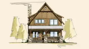 More than just a home, the Northshore is the perfect rustic retreat for family and friends. The Northshore features 3 bedrooms and 3 baths. A MossCreek Carriage House can easily added as a detached garage. A large vaulted Great Room with exposed timbers and open Kitchen complete a dramatic interior. Exterior timber, stone, board and batten, and shingle detailing complete the feel of this perfect rustic getaway.