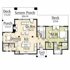 On the interior the Piano II features a master suite on the main level along with the well-known MossCreek living triangle of open kitchen-dining-great room areas.