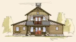 The Summit by MossCreek similarly reaches the the summit of great design for a rustic home living where friends and family feel welcome. The exterior of the Summit features log siding, tapered stone piers, timber porch framing, and metal roofing.