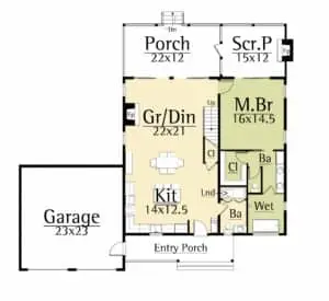 The Zerenity interior features a main level with spacious open living, master suite, and laundry room areas. A gracious screened porch creates outdoor opportunities free from insects.