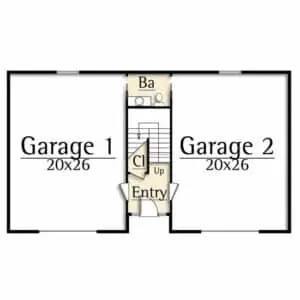 More than just a garage, the Zither carriage house combines automobile storage and living into one compact design. The Zither features a two car garage, half bath, and an entry foyer on the main level.