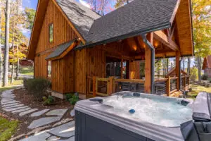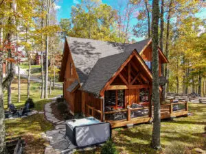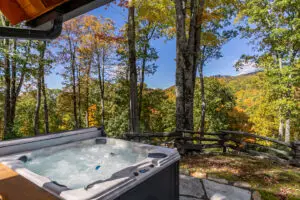 Step outside and let the cool mountain breeze refresh you on the spacious deck, which is partially covered to provide both shade and sun. Here you will find a gas grill ready for making delicious mountain meals, and a comfortable seating area just waiting to be relaxed on. Just a step down from the deck you’ll find a rustic firepit, ready for a fun evening of roasting marshmallows and telling stories, and an inviting hot tub perfect for relaxing after your day. The property has plenty more space beyond for fun outdoor games and a large area for families to enjoy outdoor living. There is also room for parking 3 cars at this home.
