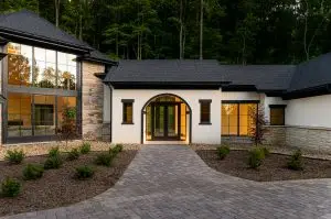 This contemporary French farmhouse is nestles effortlessly into the wooded hills of western North Carolina. The design takes traditional European architectural elements and blends them with minimalist lines to create a fresh new bespoke style fitting for 2025. This new style by MossCreek promises to become a choice selection for those wanting a fresh blend of modern sophistication.