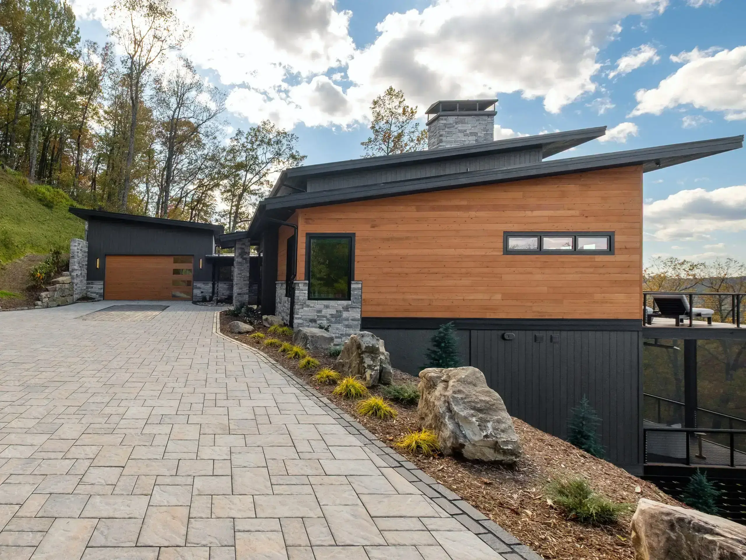 Nestled in the contemporary design ethos, The Perch by MossCreek is more than a home—it’s a statement. With its bold interplay of stone, glass, wood, and corrugated metal, the residence embodies a modern Yin-Yang philosophy: the cool precision of industrial materials softened by the warmth of natural textures. The result is a striking exterior that feels both rooted in the landscape and elevated in design sophistication.