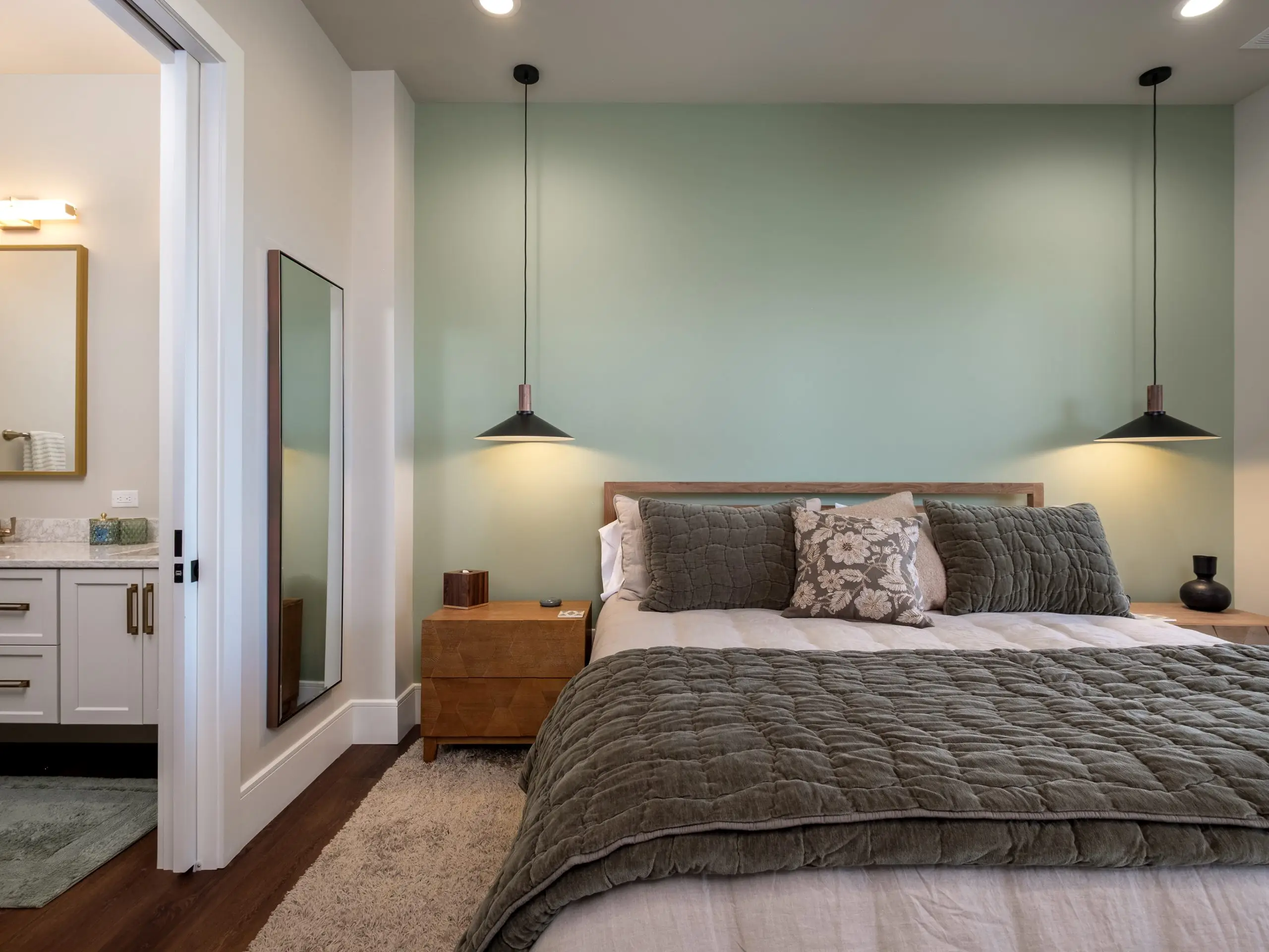 The main level offers a seamless flow between open living areas and the master suite. Beamed ceilings add a rustic touch, grounding the contemporary lines with a sense of craftsmanship. This level is designed for everyday living—functional yet inspiring.