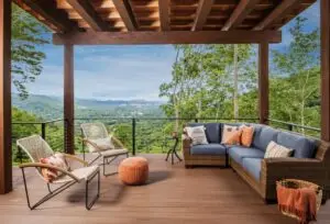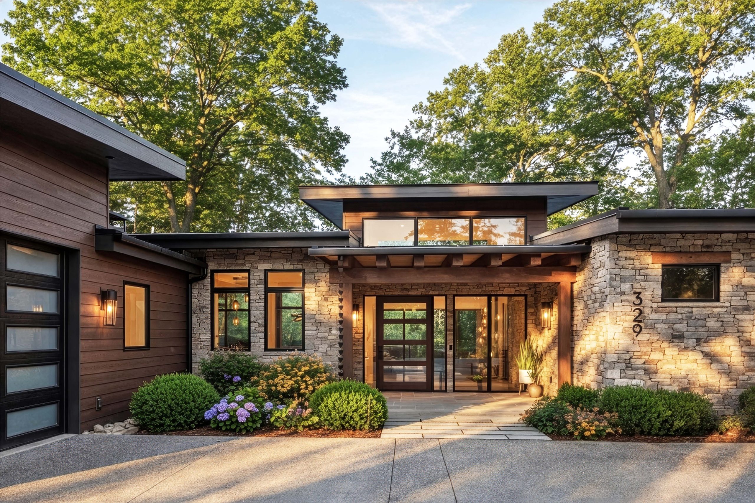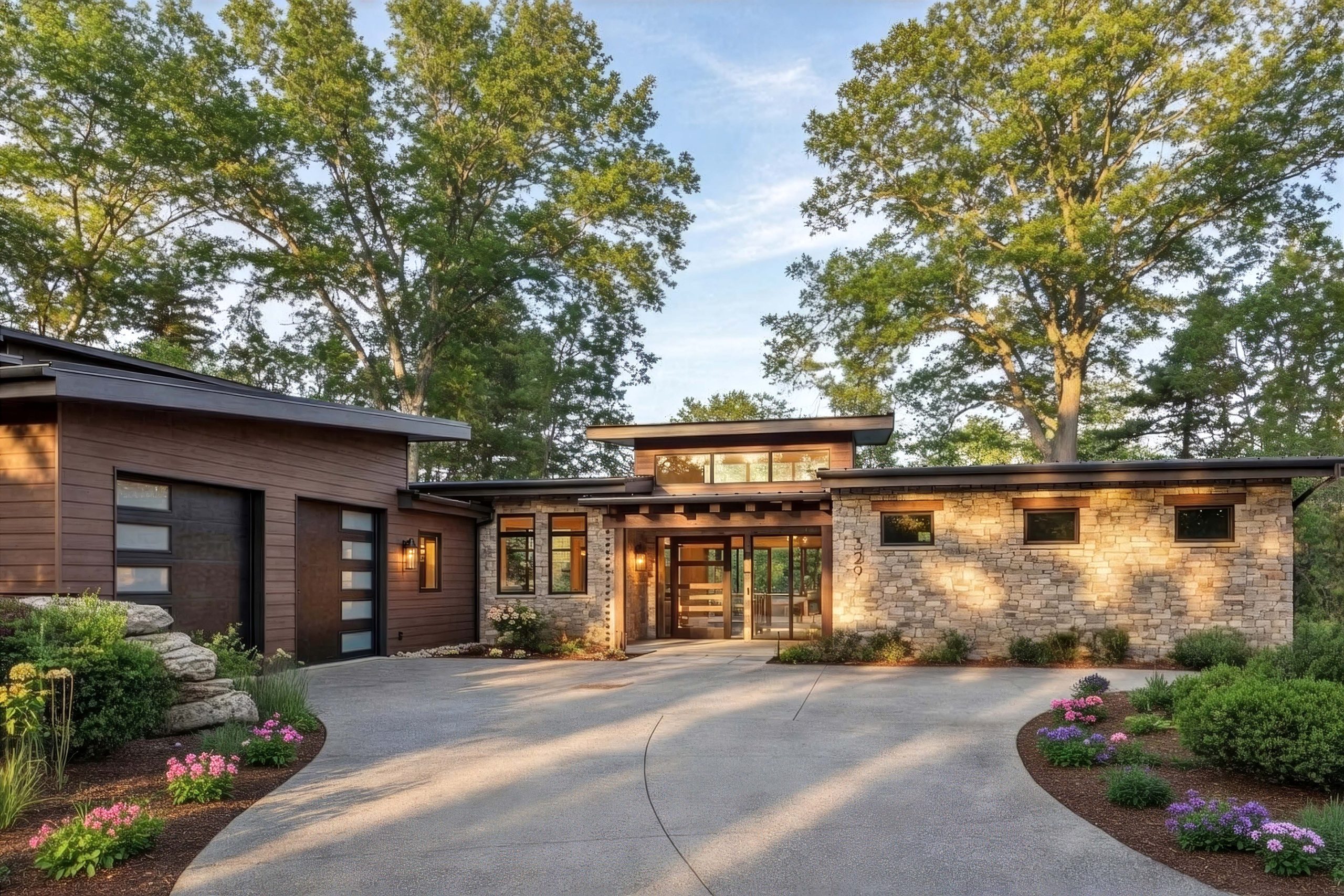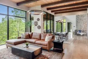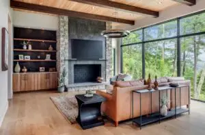 A MossCreek designed modernist style home is a perfect choice for those who appreciate elegance, comfort, and nature. Located in the prestigious community of Ventana near Asheville, NC, this home offers 3,865 sf of living space with three bedrooms and 3.5 bathrooms. The home features vaulted ceilings throughout the main level, creating a spacious and airy atmosphere. Large windows capture the surrounding landscape, bringing in natural light and scenic views. The master bedroom on the main level and the zero-entry garage makes the house well suited for aging in place. The home also has a fireplace, a gourmet kitchen, and a screened porch for relaxing and entertaining. This home is a masterpiece of modern design that blends seamlessly with the environment. It is a dream come true for anyone looking for a luxury home in a serene setting.