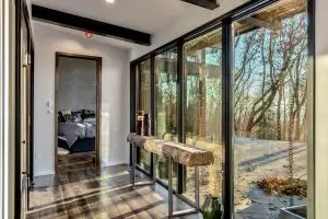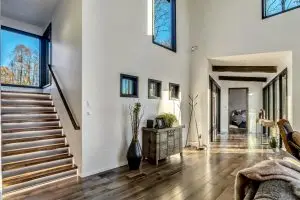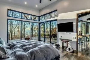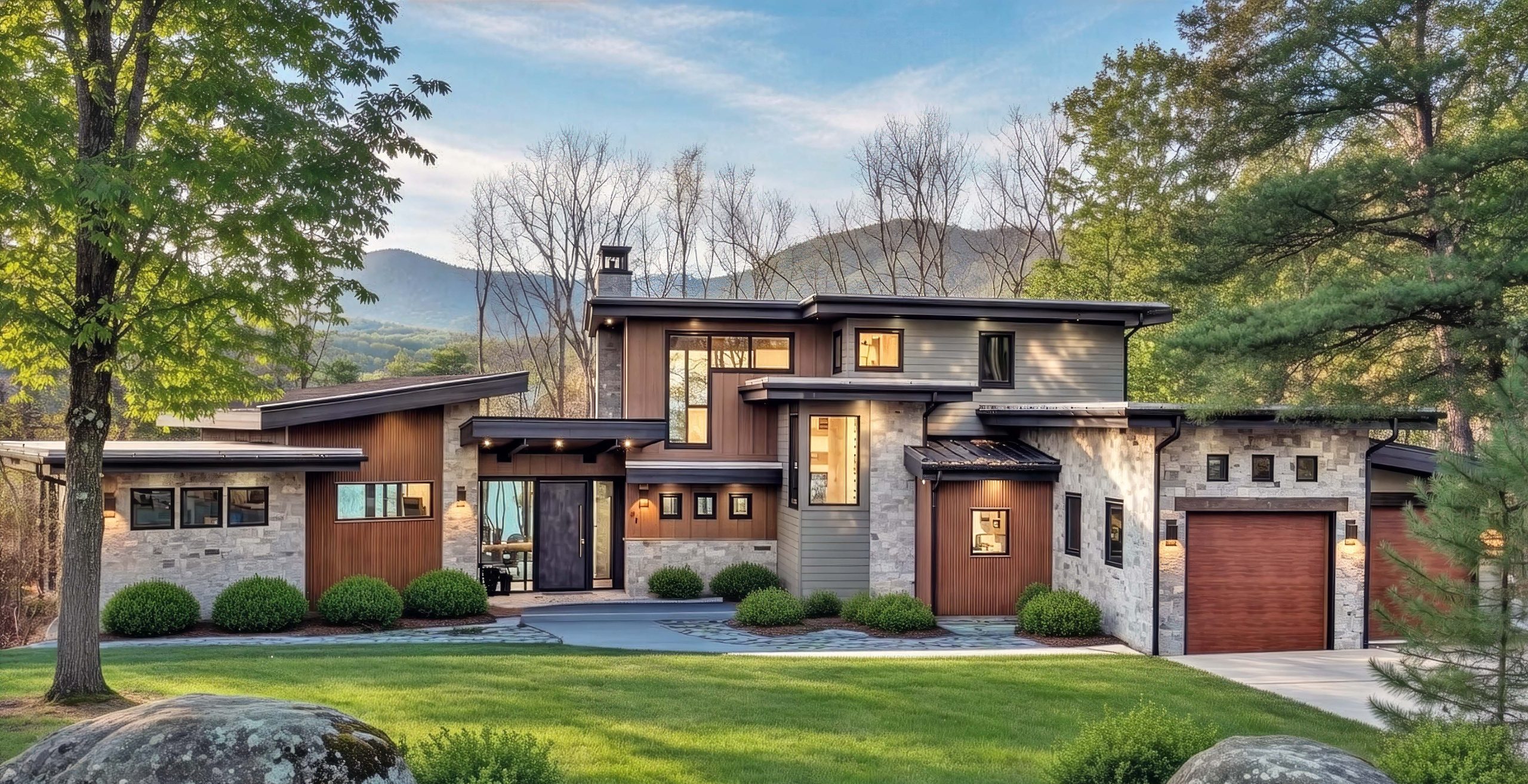 Perched in the prestigious Couch Mountain enclave of Fletcher, North Carolina, this extraordinary residence is a contemporary homage to the timeless elegance of Frank Lloyd Wright’s Prairie style. Seamlessly blending architectural sophistication with the serenity of its wooded surroundings, the home offers a refined yet grounded lifestyle for the modern aesthete.