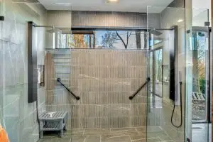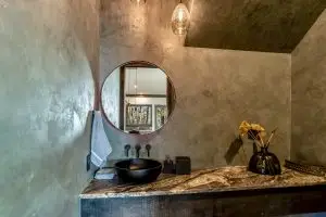 The main level is anchored by a luxurious primary suite, where generous proportions and spa-like amenities offer a private retreat of comfort and calm. Upstairs, two full bedroom suites provide equally elegant accommodations, each thoughtfully designed to echo the home’s architectural harmony and natural palette.